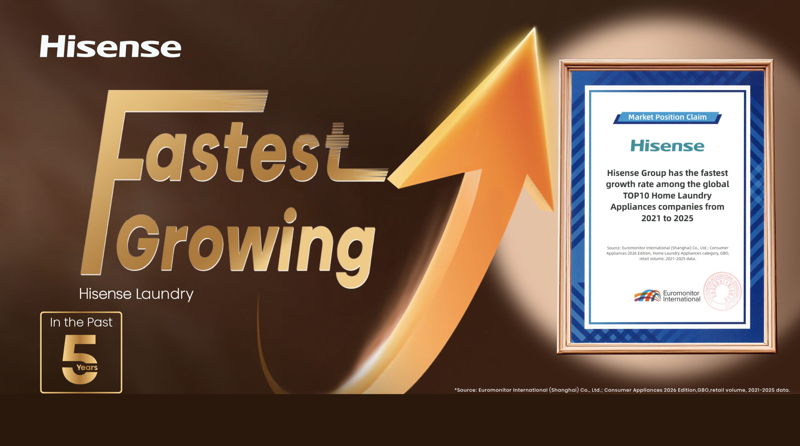 Trong bối cảnh tăng trưởng của thị trường máy giặt toàn cầu có dấu hiệu mệt mỏi, Ngành hàng Thiết bị Giặt giũ Hisense đã đạt được sự bứt phá làm thay đổi cục diện ngành. Các sản phẩm của hãng hiện đã có mặt tại hơn 140 quốc gia và vùng lãnh thổ. Thị phần đã vượt quá 30% tại Croatia, Serbia và các thị trường khác, củng cố vị thế trong top 3 nhà sản xuất hàng đầu tại địa phương. Vào tháng 11 năm 2025, Hisense Laundry Appliances Nam Phi đã thực hiện một bước nhảy vọt từ người theo sau ngành thành nhà vô địch kép về cả sản lượng và giá trị. Trên toàn cầu, Hisense đã được Euromonitor International chứng nhận là thương hiệu tăng trưởng nhanh nhất trong số 10 nhà sản xuất máy giặt hàng đầu thế giới trong 5 năm qua (2021–2025).