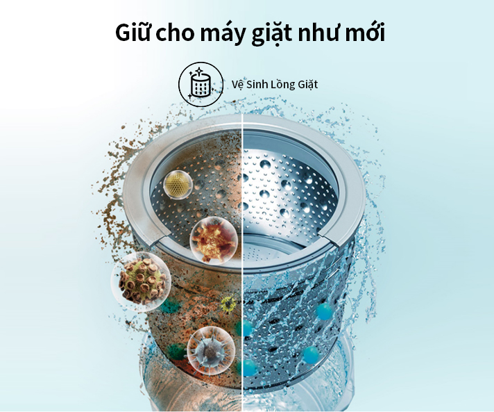 Chỉ với một nút nhấn, chế độ Vệ Sinh Lồng Giặt sẽ tự động làm sạch mọi ngóc ngách trong lồng giặt, giúp máy giặt luôn hoạt động ở trạng thái tốt nhất.