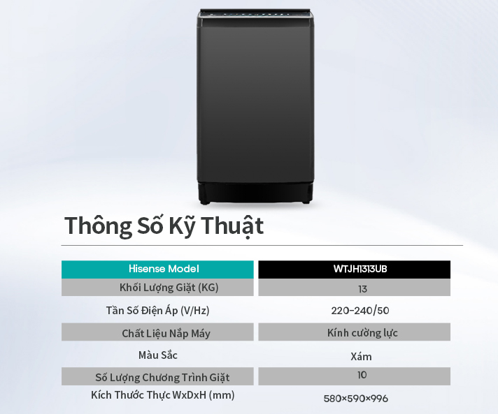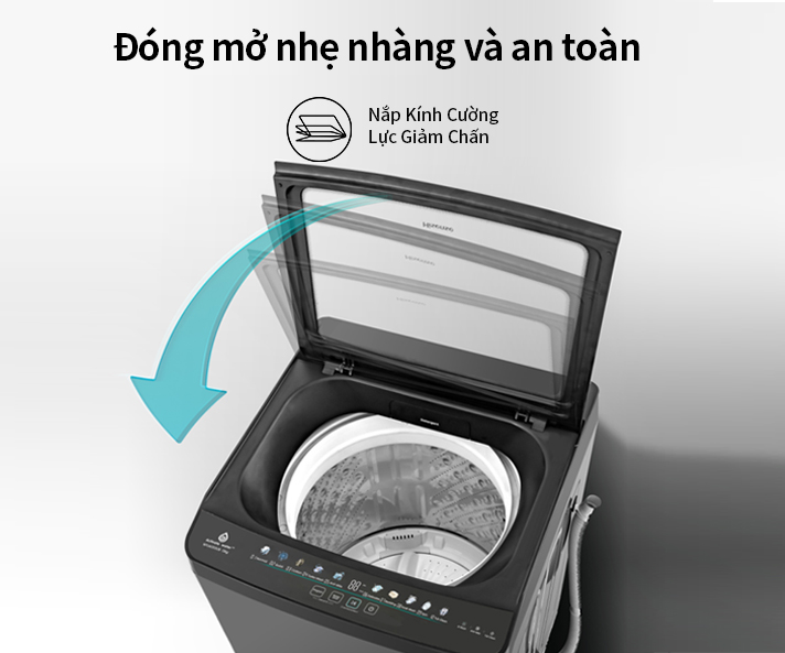 Với thiết kế trong suốt, bạn có thể quan sát quá trình giặt một cách dễ dàng. Đồng thời, cơ chế giảm chấn giúp nắp kính đóng mở êm ái, không gây tiếng ồn.