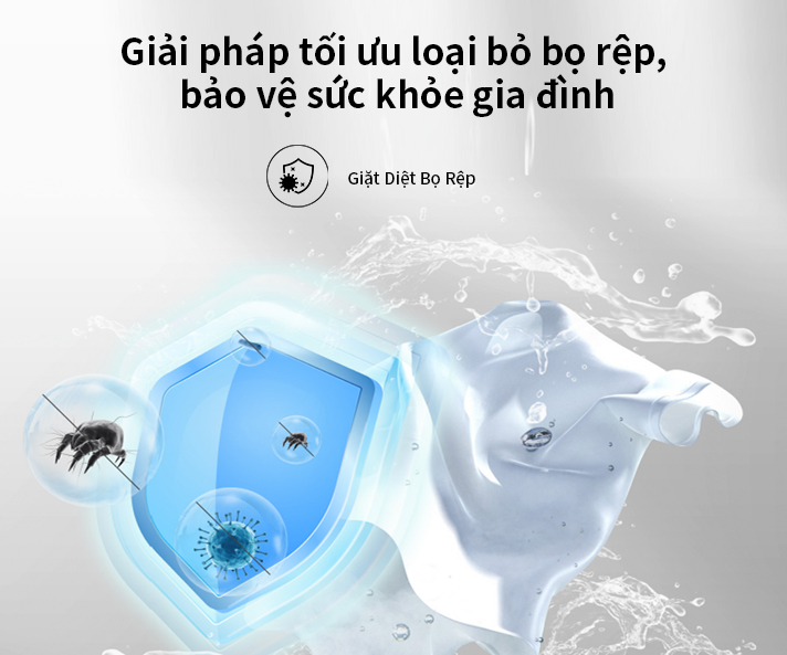 Dòng nước ma sát nhẹ nhàng tách rời và cuốn trôi bọ rệp khỏi sợi vải. Sau đó, những xoáy nước mạnh mẽ diệt trừ hoàn toàn bọ rệp. Nhiều chu trình xả và chà loại bỏ mọi dấu vết của bọ rệp, đảm bảo quần áo sạch sẽ tuyệt đối.