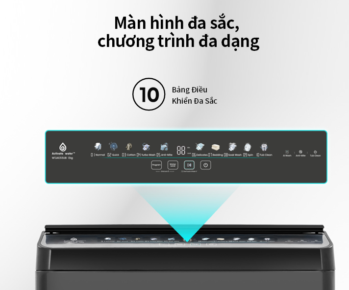10 Chương Trình Giặt & Bảng Điều Khiển Đa Sắc