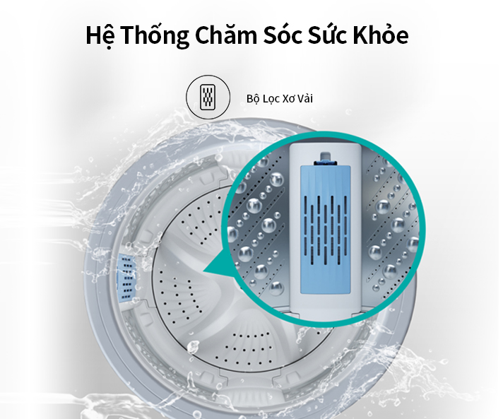 Bộ lọc giúp ngăn ngừa các xơ vải khó nhìn thấy trên quần áo và dễ vệ sinh. Nó có thể tự động lọc xơ vải, sợi và các mảnh vụn khác trong quần áo, giúp quần áo của bạn trông sạch sẽ và mang đến cho bạn môi trường giặt giũ lành mạnh.
