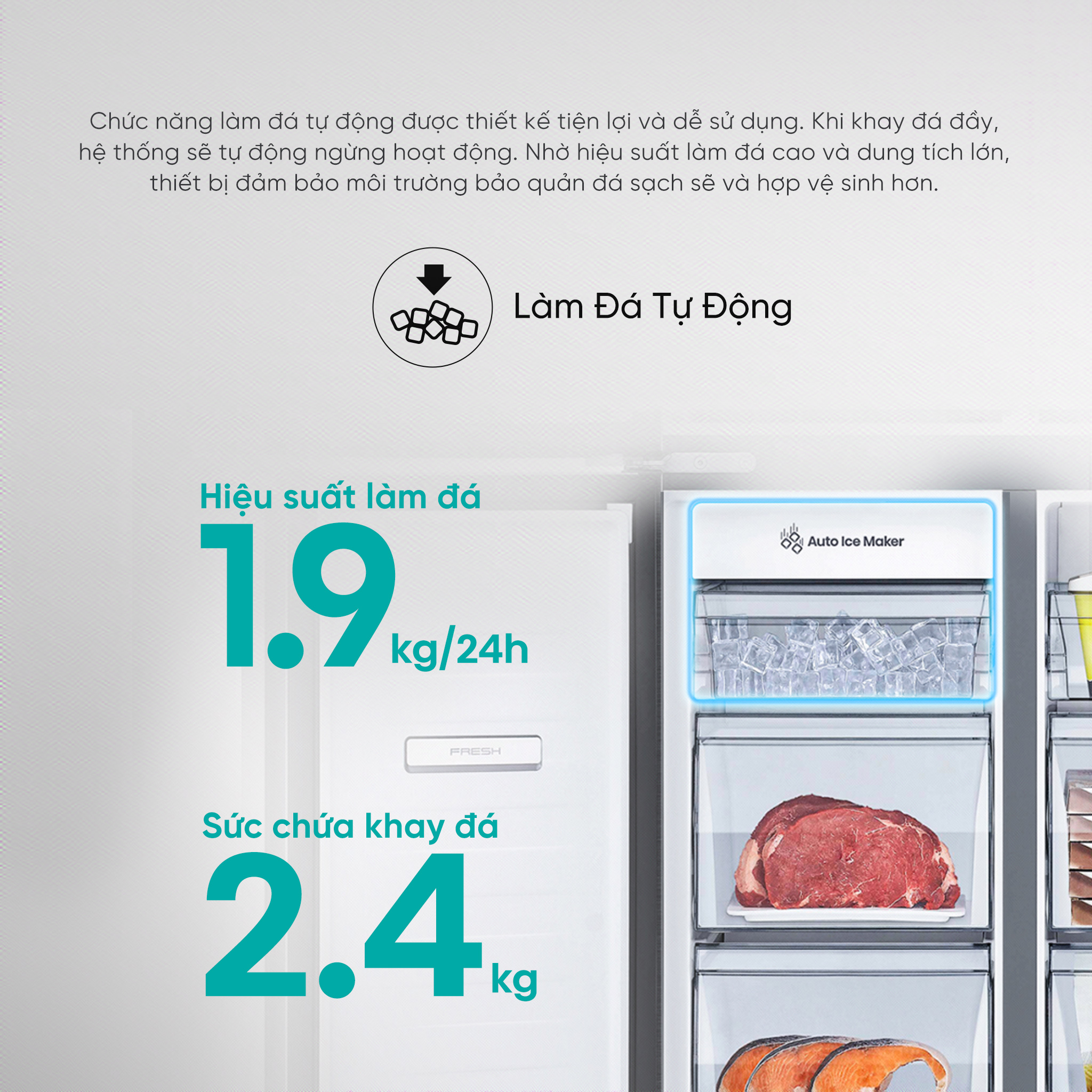 • Làm đông nhanh với mức cấp đông sâu -24°C