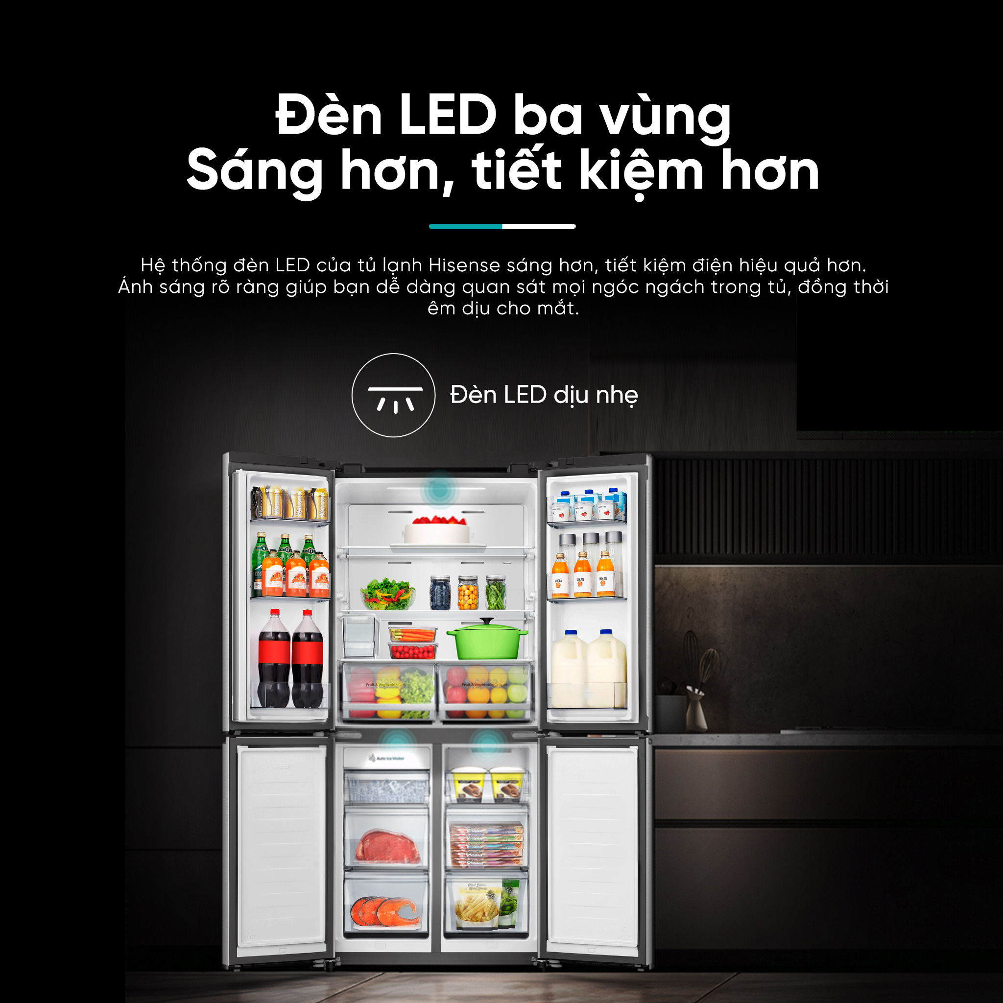 • Đèn LED dịu nhẹ cho toàn bộ không gian