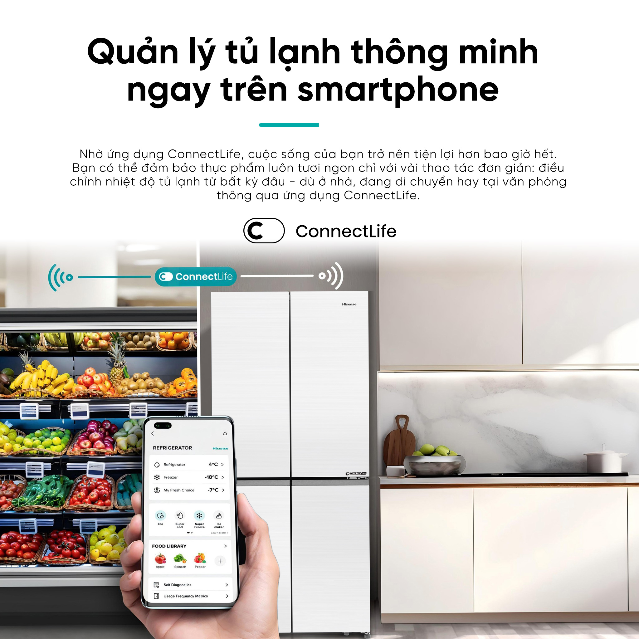 • Kết nối Wifi thông qua ứng dụng Connect Life để quản lý từ xa