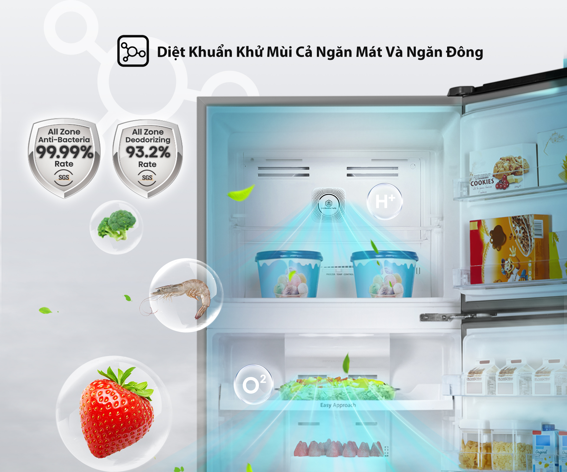 • Hệ thống diệt khuẩn, khử mùi ở ngăn mát và ngăn đông
